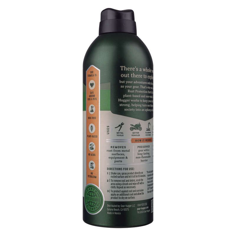 Gear Hugger Rust Protection is a 100% plant-based. non-toxic solution that removes and protects against rust and corrosion. It excels in rust removal due to its superior penetrability and. with exceptional anticorrosive properties. forms a protective layer on metal surfaces to ensure a prolonged life. Ideal for marine use. it displaces moisture and air in saline environments.